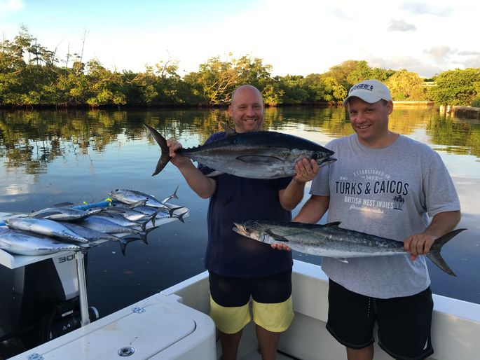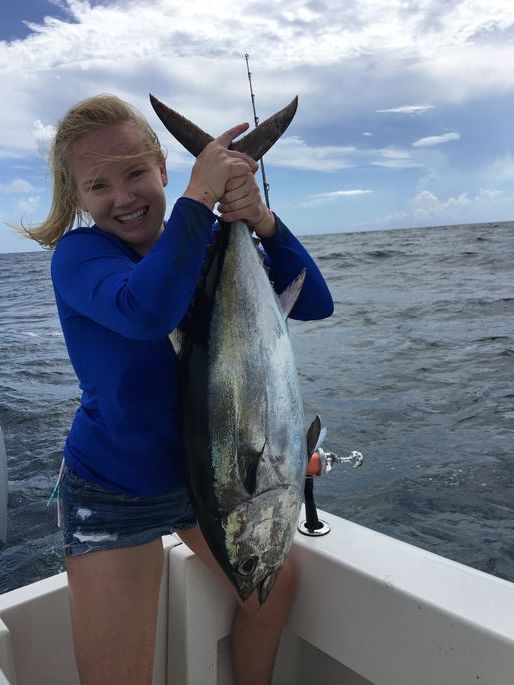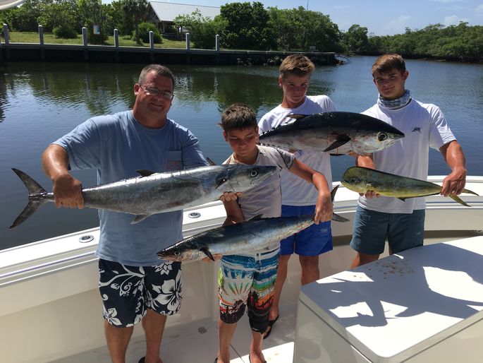 We've had a customer visiting from Ohio - a father and son who never fished saltwater before. Since they were new to saltwater fishing, I wanted them to experience some early success. The first thing we did was to catch a small tuna for 6-year-old Jack, and then the fish got bigger.
